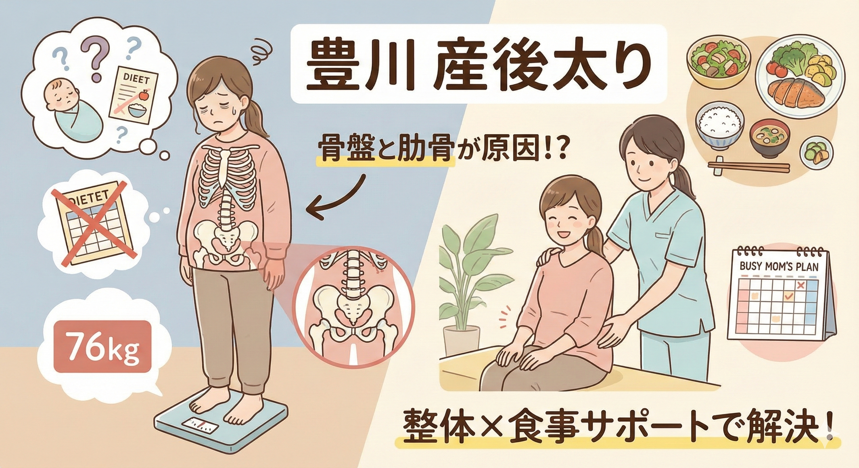 【豊川】産後太りで76kg→痩せない…その理由は“骨盤と肋骨”にあった|忙しいママでも続く整体×食事サポート