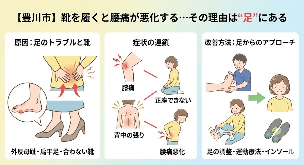 【豊川市】靴を履くと腰痛が悪化する…その理由は“足”にある|膝痛・正座できない・背中の張りの原因と改善方法